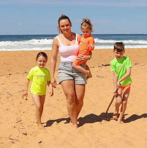 That anxiety became my motivation. I set out to design swimwear where safety is always at the forefront - using high-energy colours that are easy to spot in the water, and thoughtful details that make dressing and playing simpler for parents and kids.